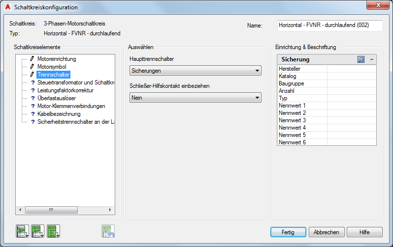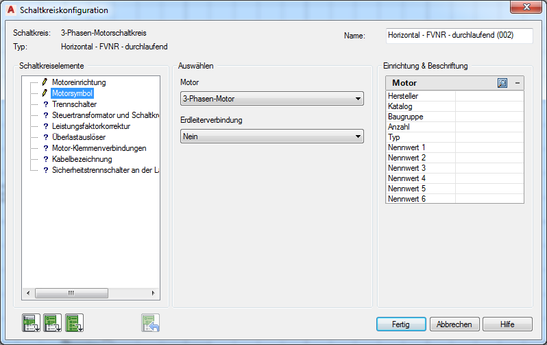 Verwenden Sie den Schaltkreis-Designer, um 3-Phasen-Motorschaltkreise einzufügen und zu konfigurieren.