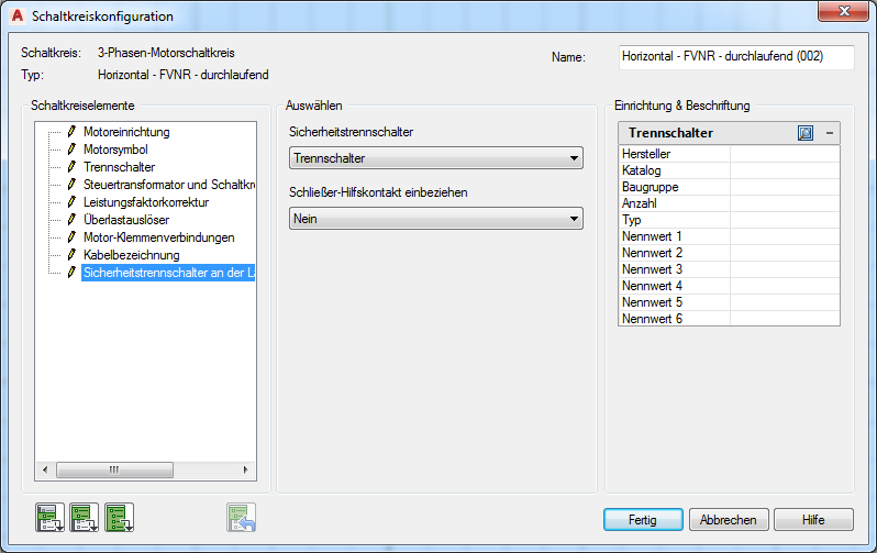 8. Wählen Sie im Abschnitt Schaltkreiselemente den Eintrag Sicherheitstrennschalter an der Last aus.