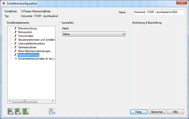 7. Wählen Sie im Abschnitt Schaltkreiselemente den Eintrag Kabelbezeichnung aus.