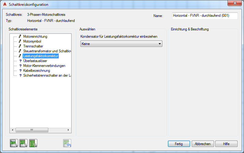 4. Wählen Sie im Abschnitt Schaltkreiselemente den Eintrag Leistungsfaktorkorrektur aus.