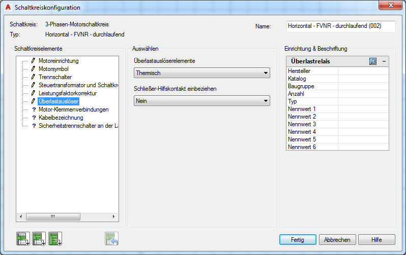 5. Wählen Sie im Abschnitt Schaltkreiselemente den Eintrag Überlastauslöser aus.