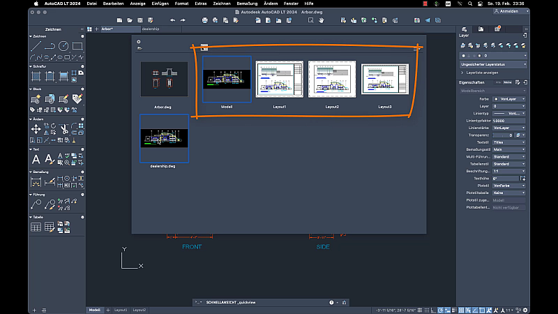 Erfahren Sie, wie Sie Layouts erstellen, Ansichten skalieren und Zeichnungen drucken.