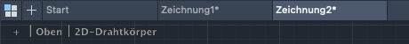 Die neue Zeichnung Zeichnung1 wird auf einer neuen Registerkarte gestartet, die sich direkt über dem Zeichenbereich befindet. Sie können auf die Registerkarten klicken, um zwischen verschiedenen geöffneten Zeichnungsdateien zu wechseln. Klicken Sie auf das Pluszeichen, um eine neue Zeichnung mit der Vorgabevorlage zu beginnen.