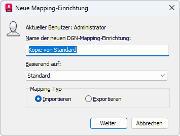 Richtet das Mapping für den Import und Export von DGN-Dateien ein.