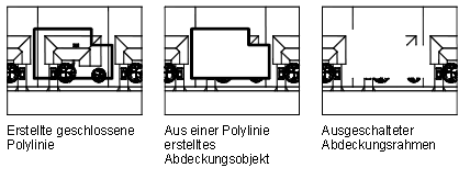 Ein Abdeckungsobjekt ist ein polygonaler Bereich, der zugrunde liegende Objekte mit der aktuellen Hintergrundfarbe verdeckt. Abgegrenzt wird der Abdeckungsbereich durch den Abdeckungsrahmen, den Sie zur Bearbeitung einschalten und zum Plotten ausschalten können.