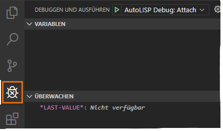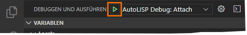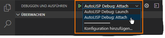 - AutoLISP Debug: Attach – Allows you to attach VS Code to an instance of AutoCAD that is already running