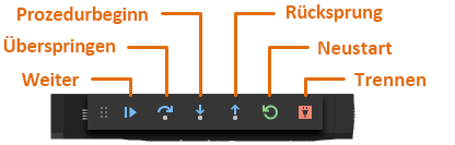 - Step Over – An entire expression (and all nested expressions) are evaluated, then execution stops at the end of the overall expression