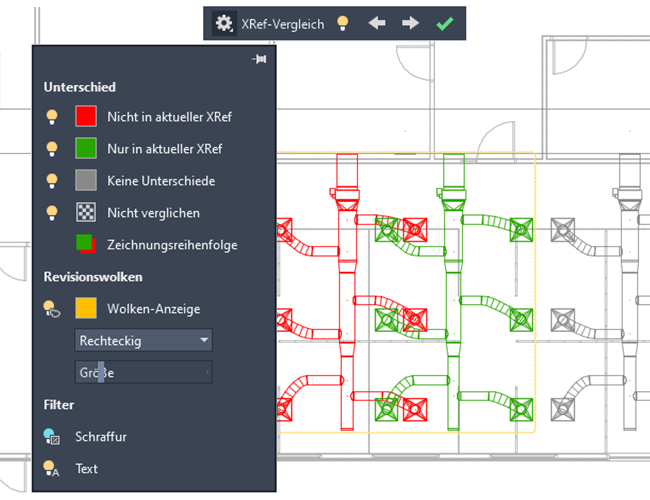 Verbesserungen beim Vergleich von AutoCAD 2021-XRefs betreffen auch AutoCAD MEP-Zeichnungen mit MEP-Objekten.