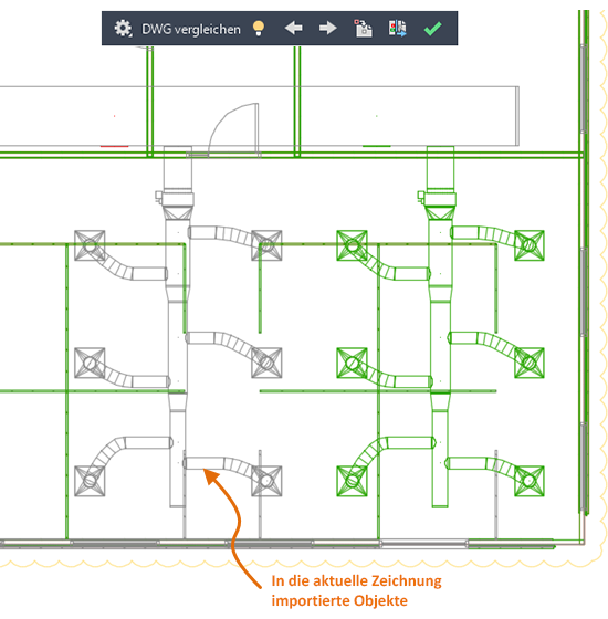 AutoCAD MEP-Objekte importieren, die nach dem Vergleich von zwei Zeichnungen als Unterschiede angezeigt werden.
