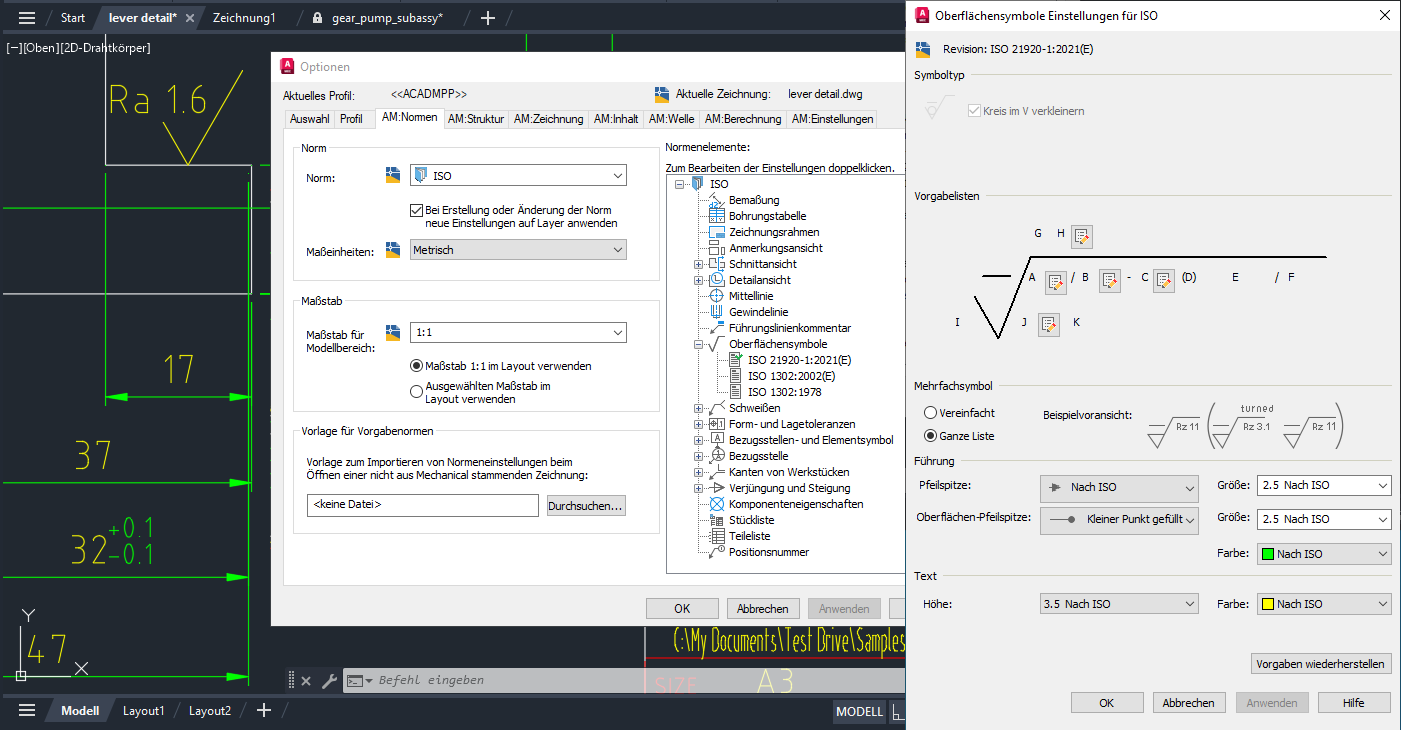 Mechanische Normen: Mechanische Normen werden jetzt beim Speichern einer Zeichnung in einem Format einer früheren Version beibehalten.