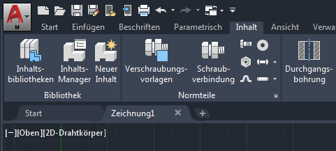 Normteile in der Blockdefinition können jetzt im Multifunktionsleisten-Katalog Einfügen angezeigt werden.