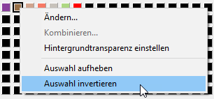 Klicken Sie mit der rechten Maustaste auf das ausgewählte Farbquadrat in der oberen Reihe des Paletten-Managers. Wählen Sie Auswahl umkehren.