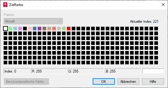 Klicken Sie im Paletten-Manager auf Farbe wählen und dann auf eine der Höhenlinien in der Zeichnung.