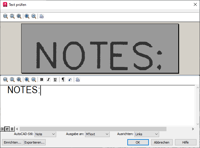 Gibt die Konvertierung des Rastertexts in AutoCAD-Text bzw. AutoCAD-MText an.