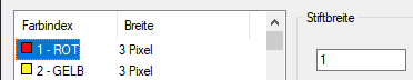 Wählen Sie die rote Stiftfarbe, legen Sie die Stiftbreite auf 1 Pixel fest, und klicken Sie auf OK.