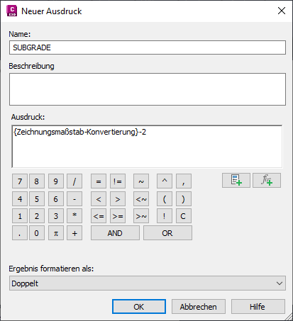 Nach der Erstellung kann dieser Ausdruck als Komponente für Beschriftungsstile und Tabellenstile verwendet werden. Erstellen Sie einen Beschriftungsstil für ein Punkthöhen-DGM mithilfe des Ausdrucks SUBGRADE. Verwenden Sie hierzu das Dialogfeld Neuer Ausdruck (siehe Abbildung 10).