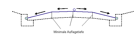 Tiefe (min.) der Auflage an Viertelpunkten und Dachprofil |