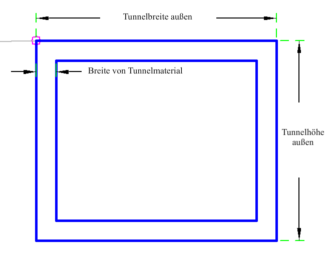 | Breite von Tunnelmaterial | Breite der Wände, Böden und des Daches des Tunnels | Numerisch, positiv |