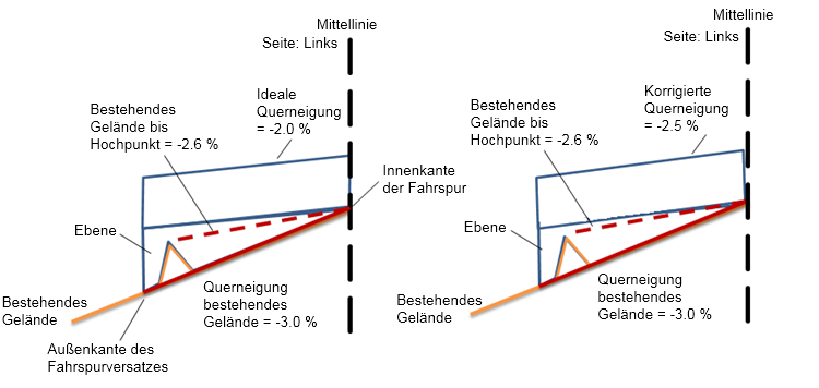 | Korrigierte Querneigung | Die korrigierte Querneigung wird auf -2.5 % angepasst. |