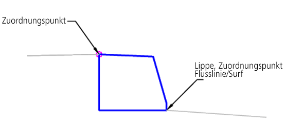 Der Zuordnungspunkt befindet sich am Auskragungspunkt des Rinnsteins, an der Rückseite des Bordsteins oder an der Fläche des Bordsteins.