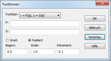 Wählen Sie aus der Auswahlliste Funktion die Option r = F(a), Z = G(a) aus.