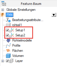 Setup1 ist ein Dreh-Setup und Setup2 ein Fräsen-Setup.