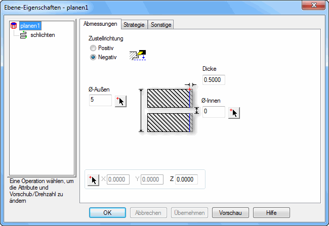 Dicke — Geben Sie die Materialmenge ein, die in Z entfernt werden soll.