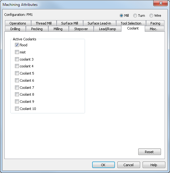Sie können diese Option für ein Werkzeug über die Registerkarte Kühlung im Dialogfeld Werkzeugeigenschaften bzw. für eine Operation über die Registerkarte Kühlung im Dialogfeld Feature-Eigenschaften überschreiben.