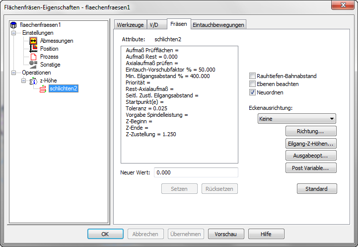 Neuordnen — Aktivieren Sie diese Option, um eine 'Tiefe zuerst'-Strategie zu erstellen. Wenn Neuordnen ausgeschaltet ist, wird jede Z-Ebene komplett geschruppt, bevor auf eine tieferliegende Ebene zugegriffen wird.