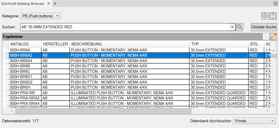 So fügen Sie ein Bauteil aus der Electrical-Katalogdatenbank ein