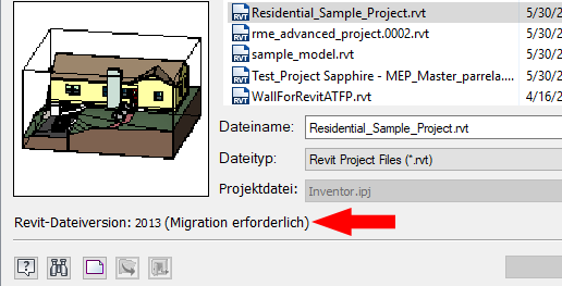 Im Dialogfeld Öffnen wird eine Miniaturansicht und die Revit-Version angezeigt, mit der die Daten zuletzt geändert wurden.