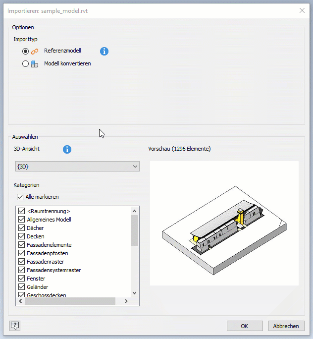 Importieren von Revit-Dateien als assoziative Referenzmodelle