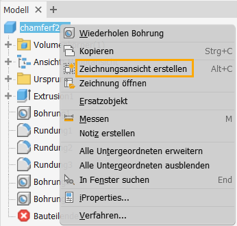 In einer Bauteil- oder Baugruppendatei: Klicken Sie mit der rechten Maustaste auf den Dateinamen im Browser, und wählen Sie Zeichnungsansicht erstellen aus. Das Dialogfeld Neue Datei erstellen wird geöffnet. | Um die Datei standard.idw zu öffnen (Vorlage verwenden), klicken Sie auf Erstellen. Sie können auch auf eine Vorlage doppelklicken, um sie zu öffnen. |