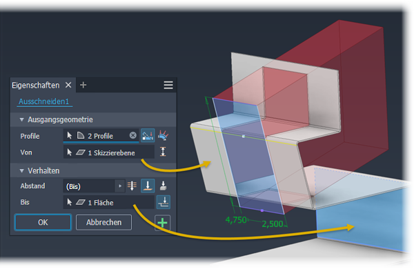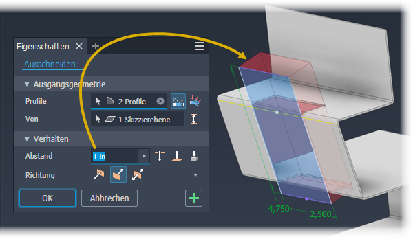 Anwenden von Ausklinkungen lotrecht zur Skizzierfläche