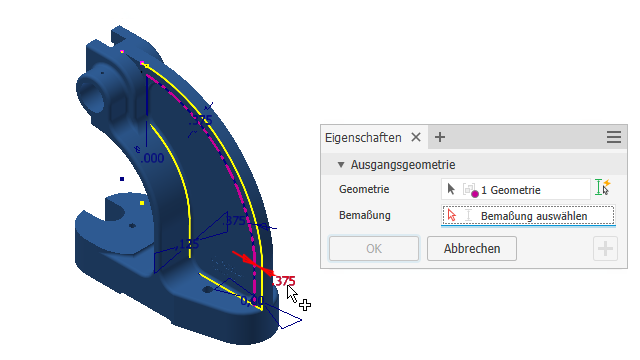 Sowohl in Bauteilen als auch in Baugruppen haben Sie jetzt die Möglichkeit, 3D-Anmerkungsbemaßungen direkt aus den Bemaßungen der ausgewählten Skizze oder des ausgewählten Elements zu erstellen. Dazu verwenden Sie den neu hinzugefügten Befehl Bemaßungen verschieben auf der Registerkarte Mit Anmerkung versehen.