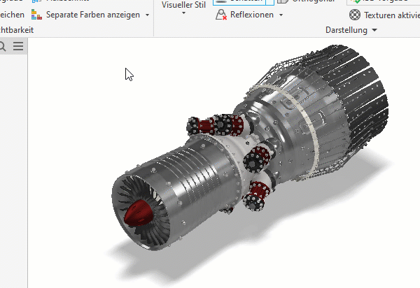 Bei Baugruppen können Sie jetzt Komponenten vorübergehend mit separaten Farben darstellen. Die Anzeige von Komponenten in eindeutigen Farben kann bei der Auswahl und beim Verständnis der räumlichen Beziehungen von Komponenten usw. hilfreich sein. Sie können außerdem die Farben definieren, die Sie verwenden möchten, wenn Sie separate Farben anzeigen.