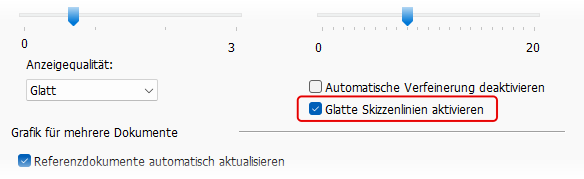 Die Anzeige der Skizziergeometrie wurde verbessert, sodass Kurven glatter dargestellt werden. Diese Anwendungsoption für die Liniendarstellung ist vorgabemäßig aktiviert.