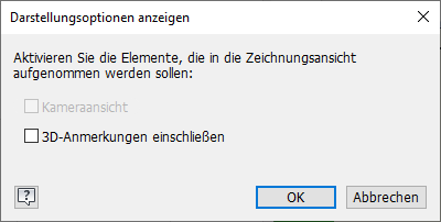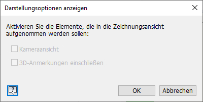 Beide Optionen sind beim Erstellen von untergeordneten Ansichten, z. B. Schnittansicht und Detailansicht, deaktiviert, wenn die Kameraausrichtung der untergeordneten Ansicht nicht mit der Ausrichtung der bearbeiteten Zeichnungsansicht übereinstimmt.