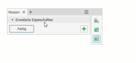 Einige Eigenschaftengruppen, wie z. B. Rundung oder Messen, verwenden eine Werkzeugpalette. In Werkzeugpaletten werden Optionen angezeigt, die für den aktuell verwendeten Befehl nützlich sind. Werkzeugpaletten sind vorgabemäßig an der Gruppe Eigenschaften fixiert. Sie können aus der Eigenschaftengruppe an eine geeignete Position im Ansichtsbereich gezogen werden. Um sie an der Eigenschaftengruppe zu fixieren, ziehen Sie sie daneben.