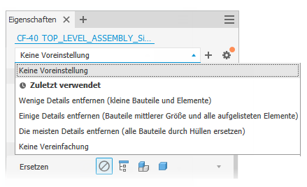 Integrierte Voreinstellungen (vordefiniert für einen bestimmten Zweck) sind im Befehl Vereinfachen enthalten.
