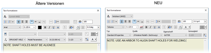 Einige Steuerelemente im Dialogfeld Text formatieren wurden konsolidiert, um den Arbeitsablauf zu verbessern und die Übersichtlichkeit der Benutzeroberfläche zu erhöhen. Es wurden keine Verhaltensweisen geändert.