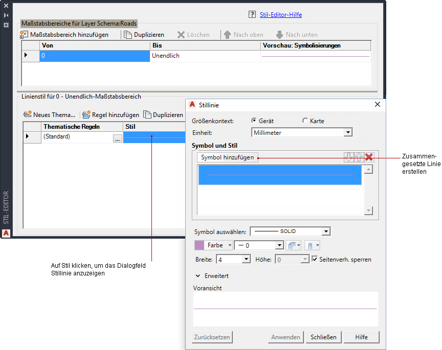 - Definieren Sie einen anderen Maßstabsbereich, und legen Sie einen durchgezogenen Linienstil dafür fest.