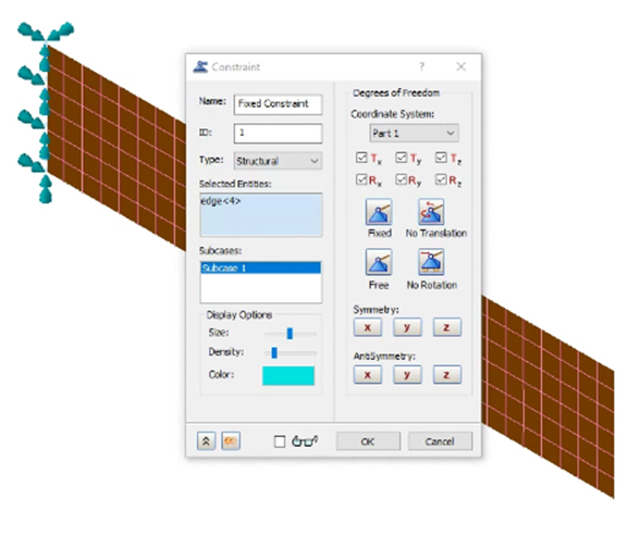 - Wählen Sie die hintere Kante des Balkens wie dargestellt aus und stellen Sie sicher, dass Subcase 1 unter Subcases ausgewählt ist.