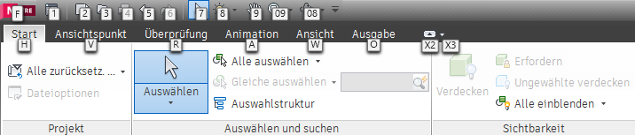 Navisworks bietet Zugriffstasten oder Tastentipps, sodass für die Interaktion mit dem Anwendungsfenster die Tastatur statt der Maus verwendet werden kann.