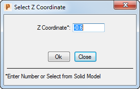 Use the Select Z Coordinate dialog to set the Z coordinate at which to add extra edges to the solid model in the XY plane.