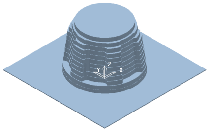 - Restmaterial anzeigen — Wählen Sie dies, um das Material anzuzeigen, das nach dem Anwenden der aktiven Rohteilmodell-Status-Operation verbleibt. Dies ist der Unterschied zwischen dem aktiven Status des Rohteils und des Modells. Dies zeigt das Material mit einem Aufmaß größer als das Restmaterialaufmaß an. Dies ist hilfreich, um anzuzeigen, an welchen Stellen sich Überschussmaterial befindet, insbesondere bei vertikalen Flächen, bei denen bestimmte Bahnabstandswerte Überschussmaterial übriglassen können.