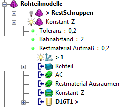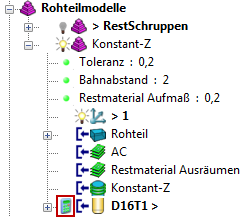 Wenn Sie die Berechnung jedes Status löschen (dies ist möglich, indem Sie einfach die Berechnung des Blocks entfernen), können Sie die Rohteilmodell-Parameter (z. B. Toleranz, Bahnabstand oder Arbeitsebene) ändern. Dadurch können Sie ein Rohteilmodell bei verschiedenen Toleranzen erstellen, ohne die Werkzeugwege erneut anwenden zu müssen.