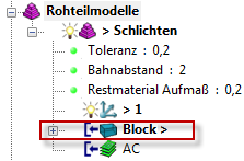 Wenn Sie den Status Block aktivieren, wird das Rohteilmodell des Blocks angezeigt.