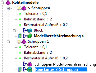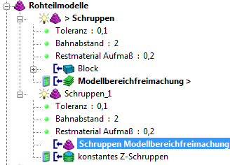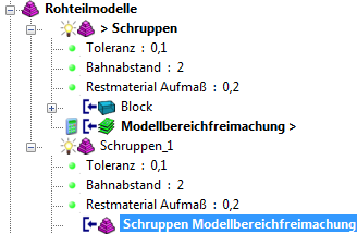 Das Rohteilmodell Roughing_1 enthält nun zwei Status:
