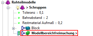 Dies erstellt ein Rohteilmodell Roughing_1, bei dem der Block der Werkzeugwegstatus ist.